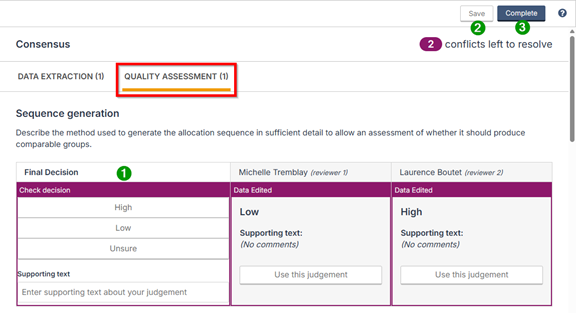 - Compare: Références pour lesquelles un consensus est requis pour compléter l’évaluation des risques de biais